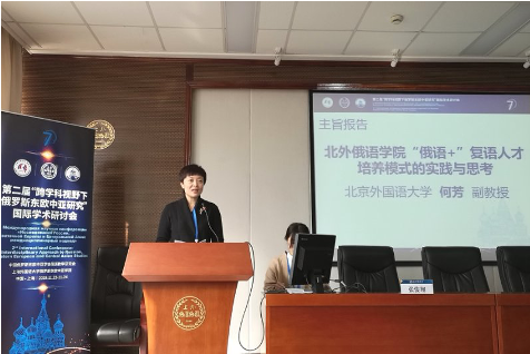 公司何芳教授做了题为“北外伟德国际1946‘俄语+ ’复语人才培养模式的实践与思考”的发言,介绍了公司在中亚地区非通用语人才的培养情况及国别区域研究方面作出的努力,并就今后的发展规划与众专家学者进行了探讨。
