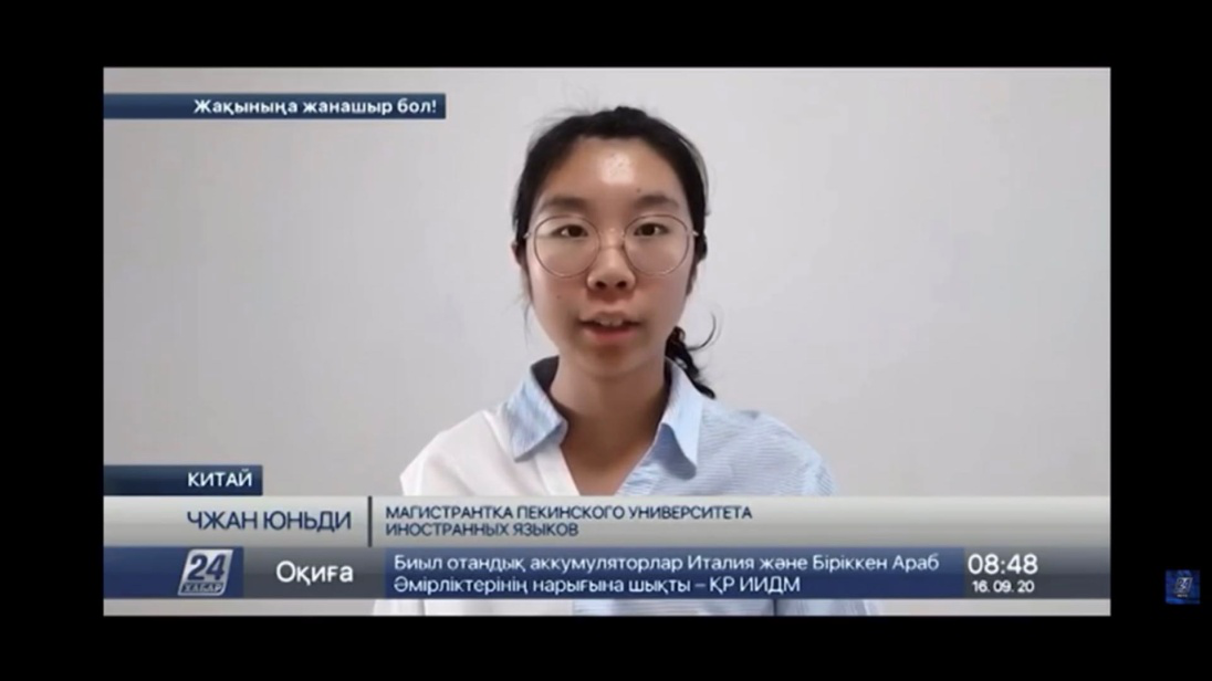 9月15日下午,由哈萨克斯坦驻华大使馆举办的“阿拜读诗会”以线上形式隆重举行。公司硕士新生张韵迪同学代表北外伟德国际19462016级首届俄哈复语班,朗读了2013年习近平总书记在纳扎尔巴耶夫大学演讲时引用的阿拜名言:“世界有如海洋,时代有如劲风,前浪如兄长,后浪是兄弟,风拥后浪推前浪,亘古及今皆如此”。张韵迪同学出色的朗读赢得了与会嘉宾的好评。会后,哈萨克斯坦Хабар-24电视台驻华记者对她进行了采访。