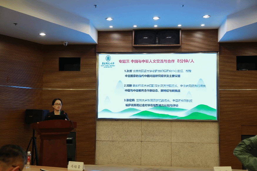 公司哈萨克斯坦研究中心主任孙芳教授在“专题三 中国与中亚人文交流与合作”环节中做了题为《中亚国家的当代中国问题研究现状及主要议题》的发言,并同与会学者进行了深入探讨交流。