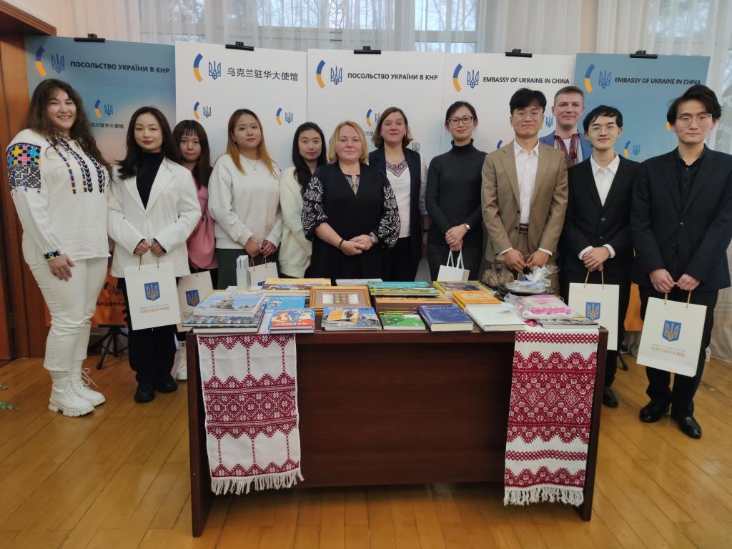 12月9日下午,应乌克兰驻华使馆邀请,俄语公司乌克兰语专业师生赴使馆参加了向伟德国际1946乌克兰研究中心赠书仪式。乌克兰驻华使馆临时代办、公使衔参赞张娜·列亲斯卡、一等秘书瓦列里·布隆斯基赫、二等秘书瓦莲京娜·奥利尼克出席活动。