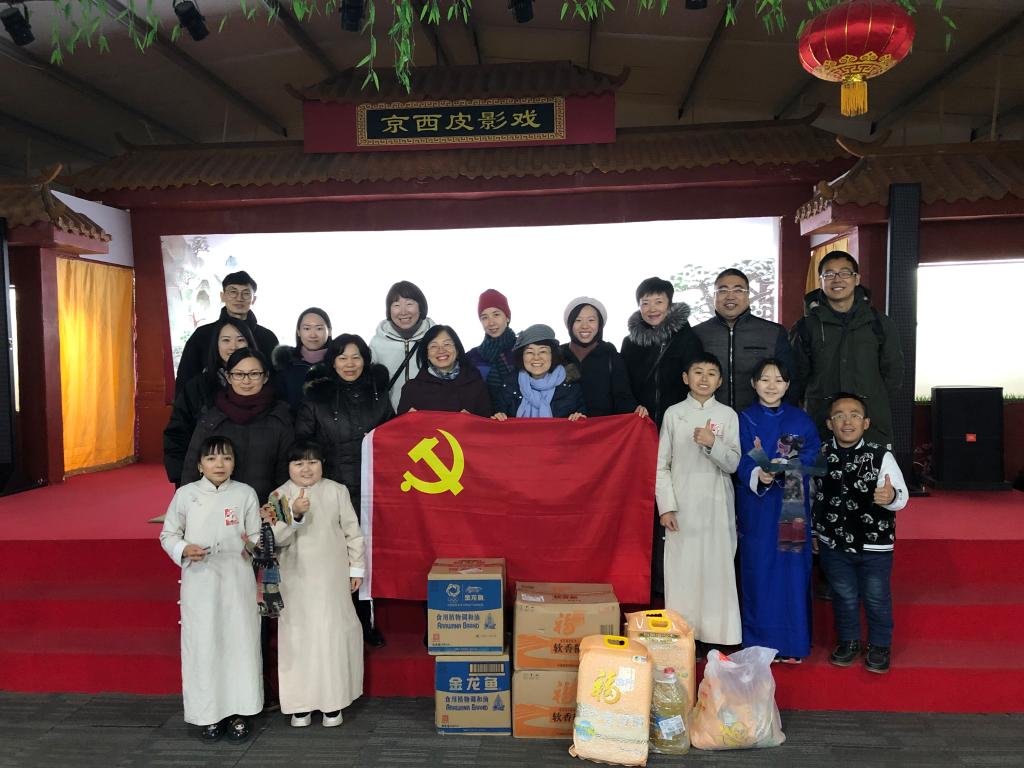 2019年12月25日上午,在伟德国际1946俄语公司党总支的组织下,伟德国际1946经理、党总支副书记戴桂菊,副经理何芳与公司师生党员们来到中国京西皮影非遗园,对北京龙在天皮影艺术剧院的袖珍人演员们进行慰问,向他们送去了大米和食用油等慰问品,希望能在寒冽冬日为他们带去温暖。