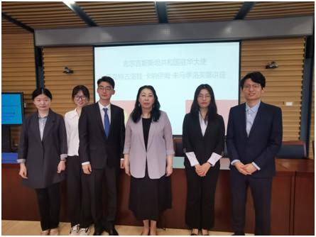 讲座结束后,巴克特古洛娃大使与伟德国际1946吉尔吉斯语专业同学进行了亲切交谈,并邀请他们去吉尔吉斯斯坦驻华使馆参观,欢迎他们参加吉语诗歌朗诵等活动。
